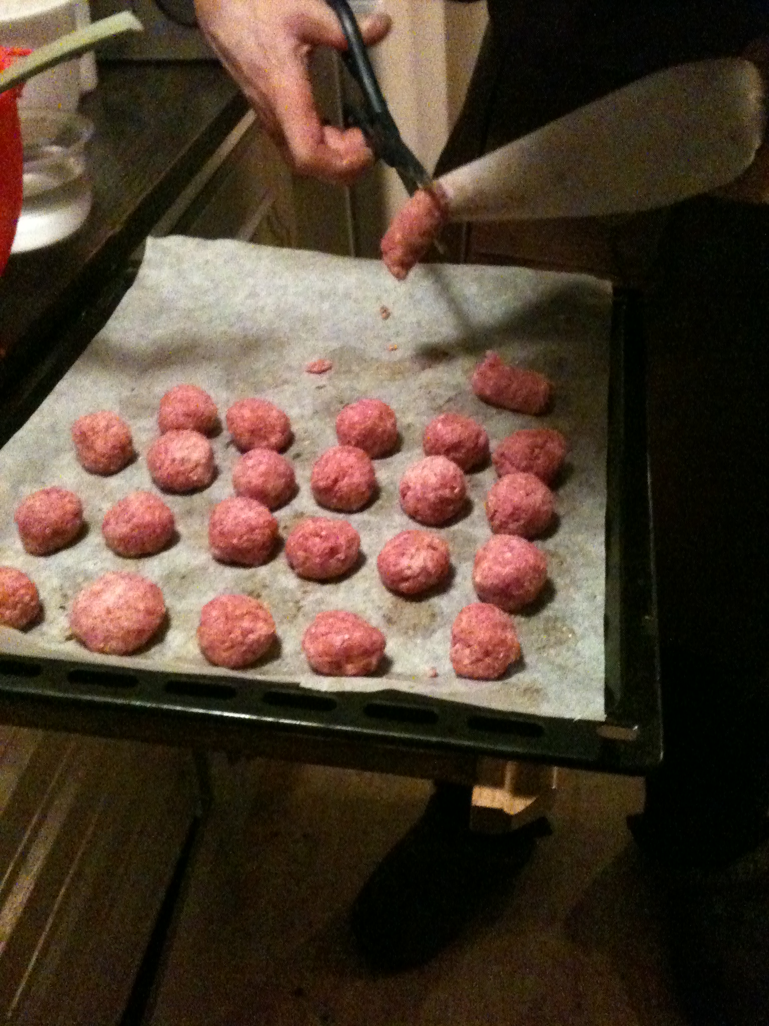 Och sen skjuts in i ugnen. 100 grader och efter en halvtimme bytte jag plats på plåtarna. Vi har ingen varmluftsugn men det funkade med två plåtar ändå.